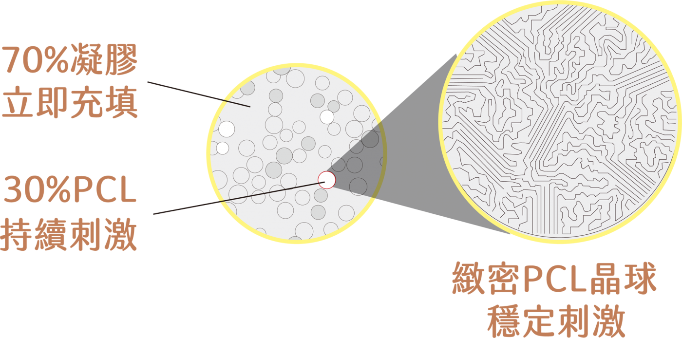 PCL 微晶球啟動膠原增生