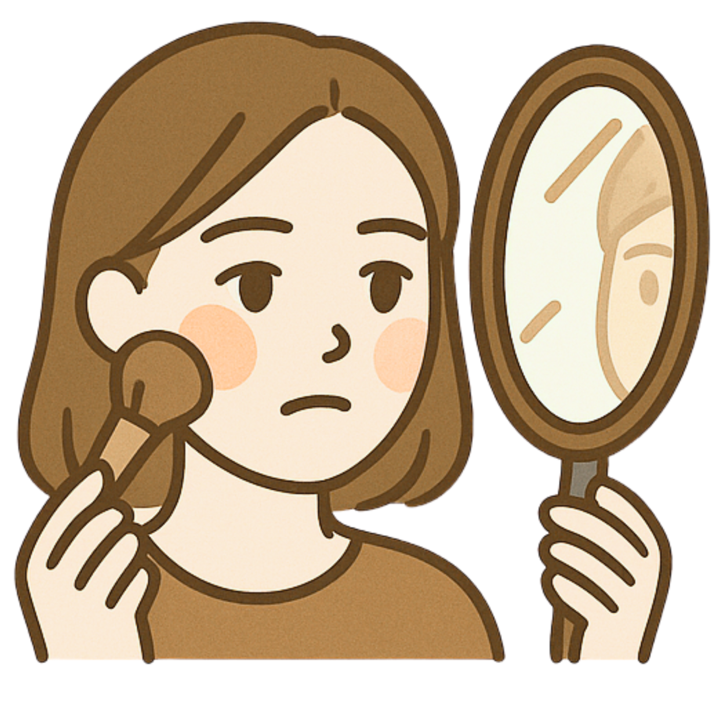 中臉凹陷無法反光,讓臉色暗沉,腮紅與底妝也更難上妝自然。